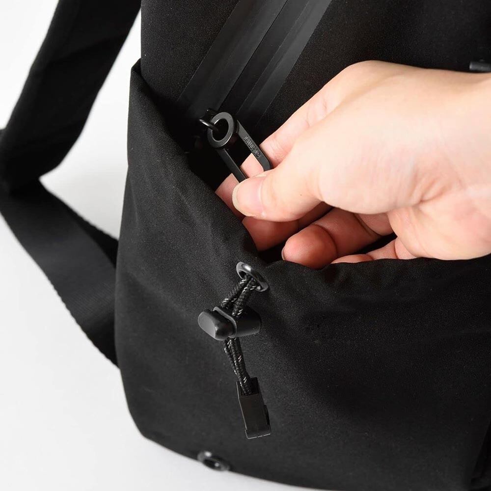 サイドのアジャスター機能付きバックルでバックパックの厚さを調節できます。