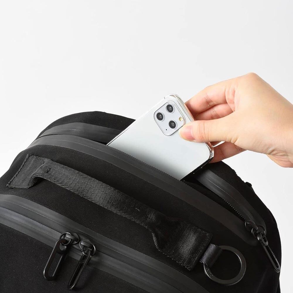 外ポケットにはハトメを施し、万が一雨水が溜まっても水が抜ける仕組みです。