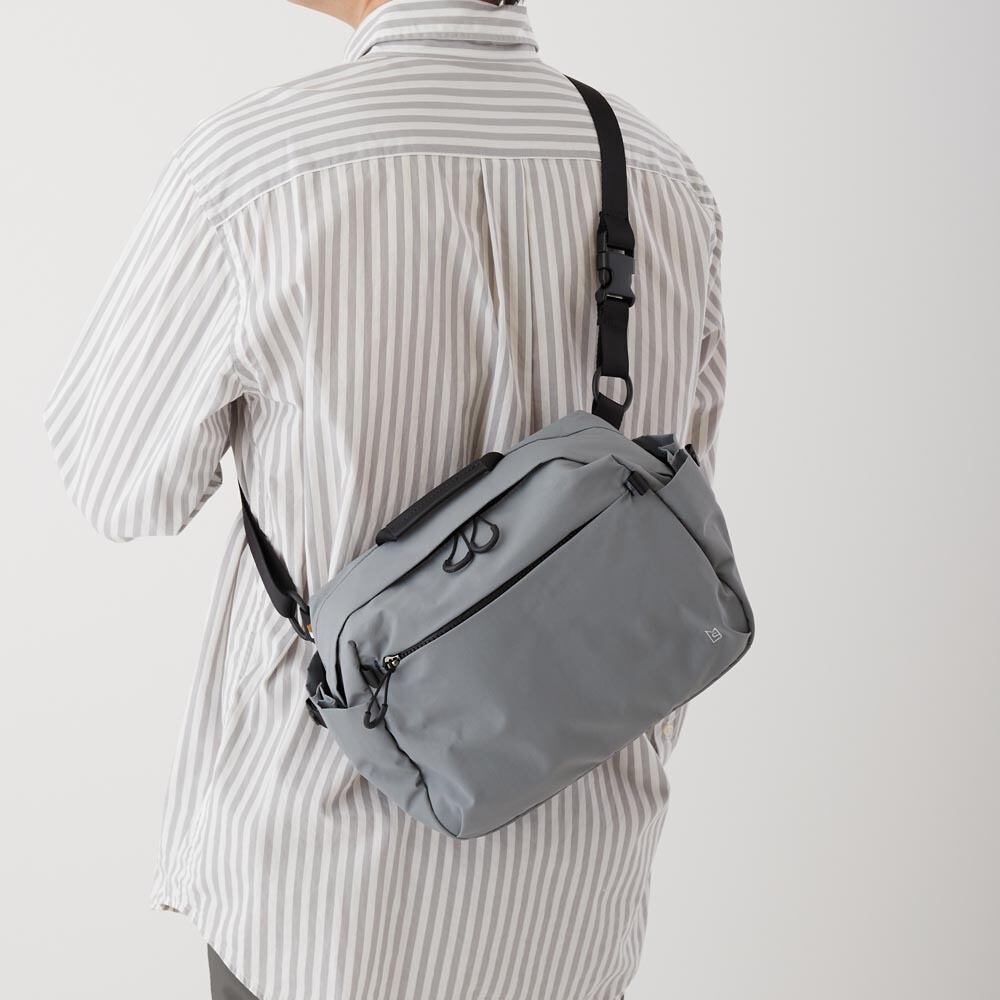 収納力・軽さ・耐水性に優れたミニマルデザインのショルダーバッグ。