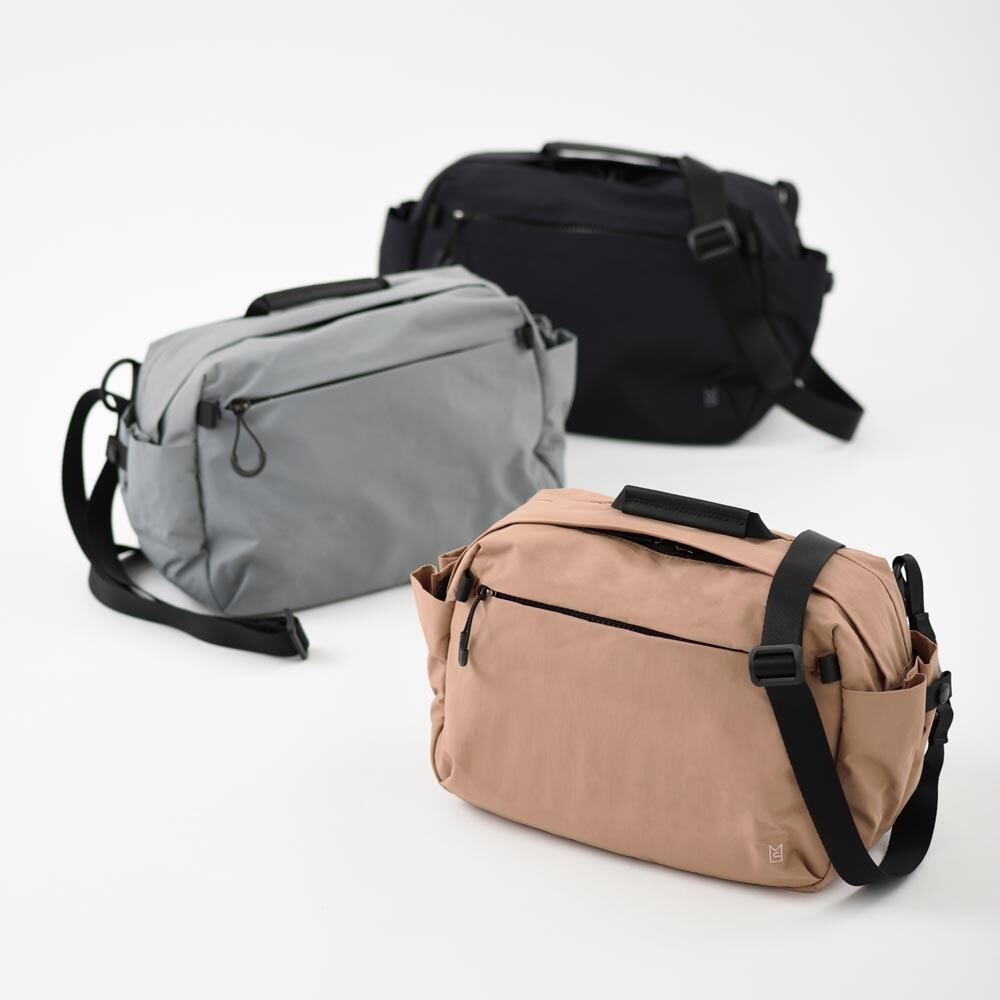 収納力・軽さ・耐水性に優れたミニマルデザインのショルダーバッグ。