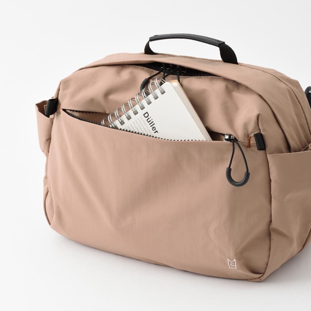 収納力・軽さ・耐水性に優れたミニマルデザインのショルダーバッグ。