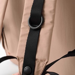 外装にはすぐ取り出したい物の収納に便利なフロントポケット、ペットボトルや傘を収納できる両サイドのポケット、背負ったまま物を出し入れできる背面のファスナーポケットを搭載し、ミニマルなデザインとは裏腹に使い勝手を考え抜かれたポケットの配置が魅力です。