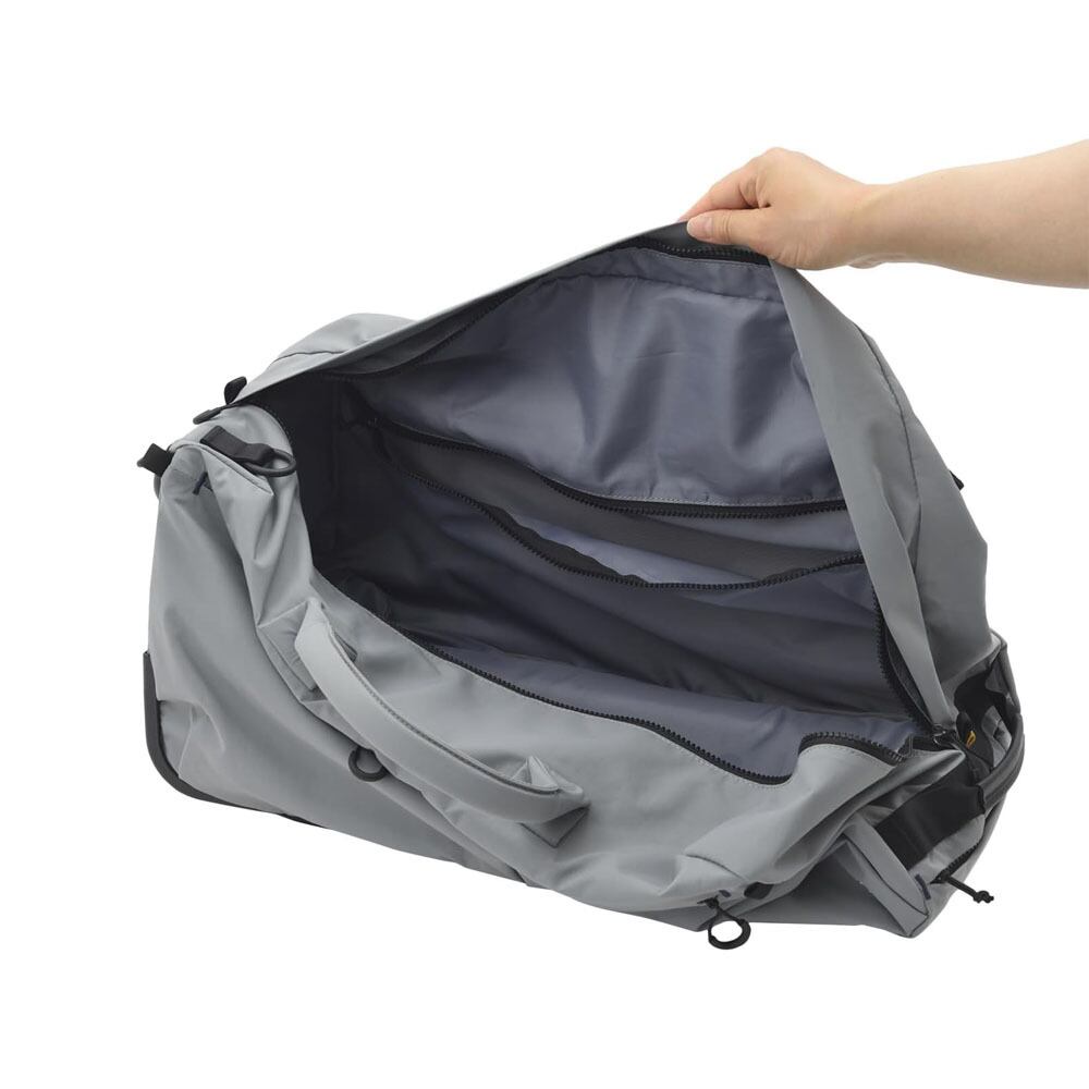 収納力・軽さ・耐水性に優れたミニマルデザインのダッフルキャリー。