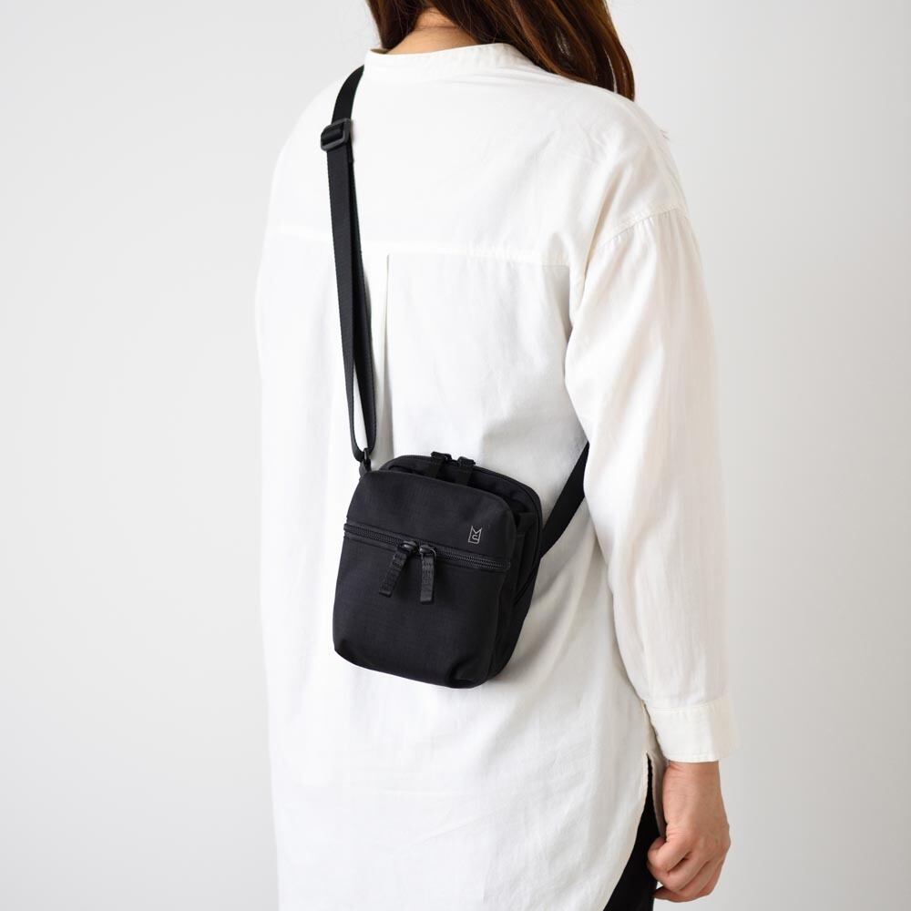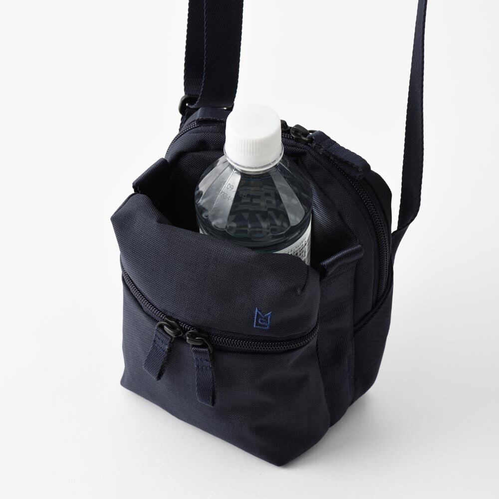 ペットボトルや折りたたみ傘などが真ん中のオープンポケットに収納できて出し入れしやすいミニショルダーバッグ。