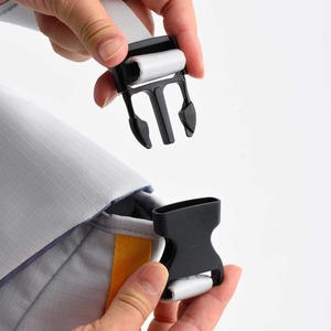 ショルダーはワンタッチ式のバックル付きで、着脱もスムーズにできます。