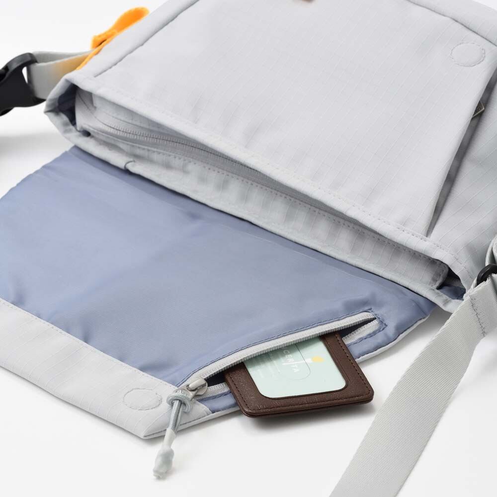 多角形を組み合わせた立体フォルムを生かし、各面にファスナーポケットやサイドポケット、背面ポケットなど用途に応じたポケットを整然と配置することで「収納力」に特化しています。
