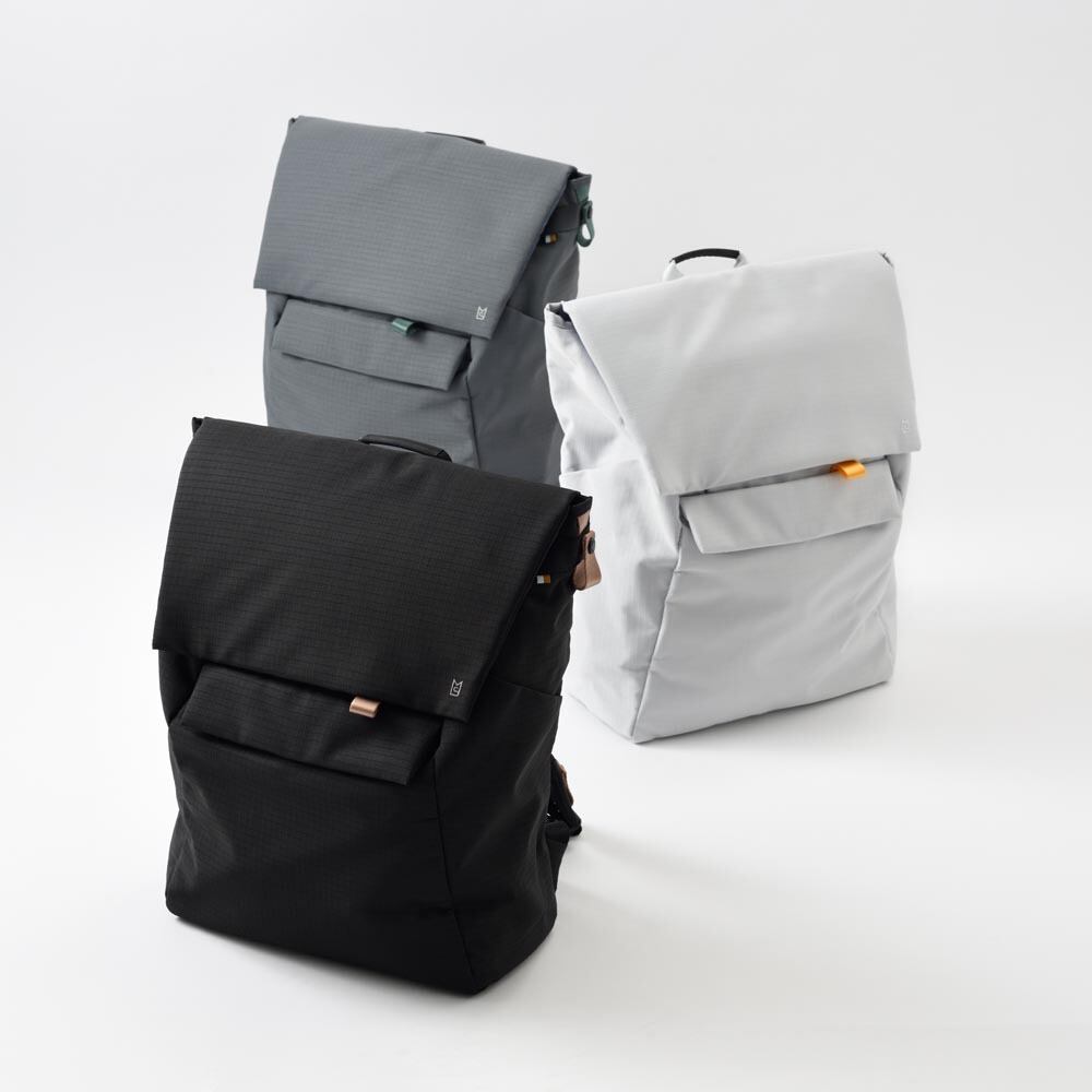 都市建築に着想を得た、幾何学的デザインのフラップバックパックです。