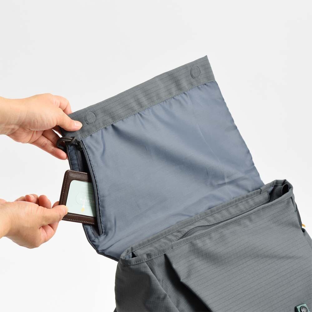多角形を組み合わせた立体フォルムを生かし、各面にファスナーポケットやサイドポケット、背面ポケットなど用途に応じたポケットを整然と配置することで「収納力」に特化しました。