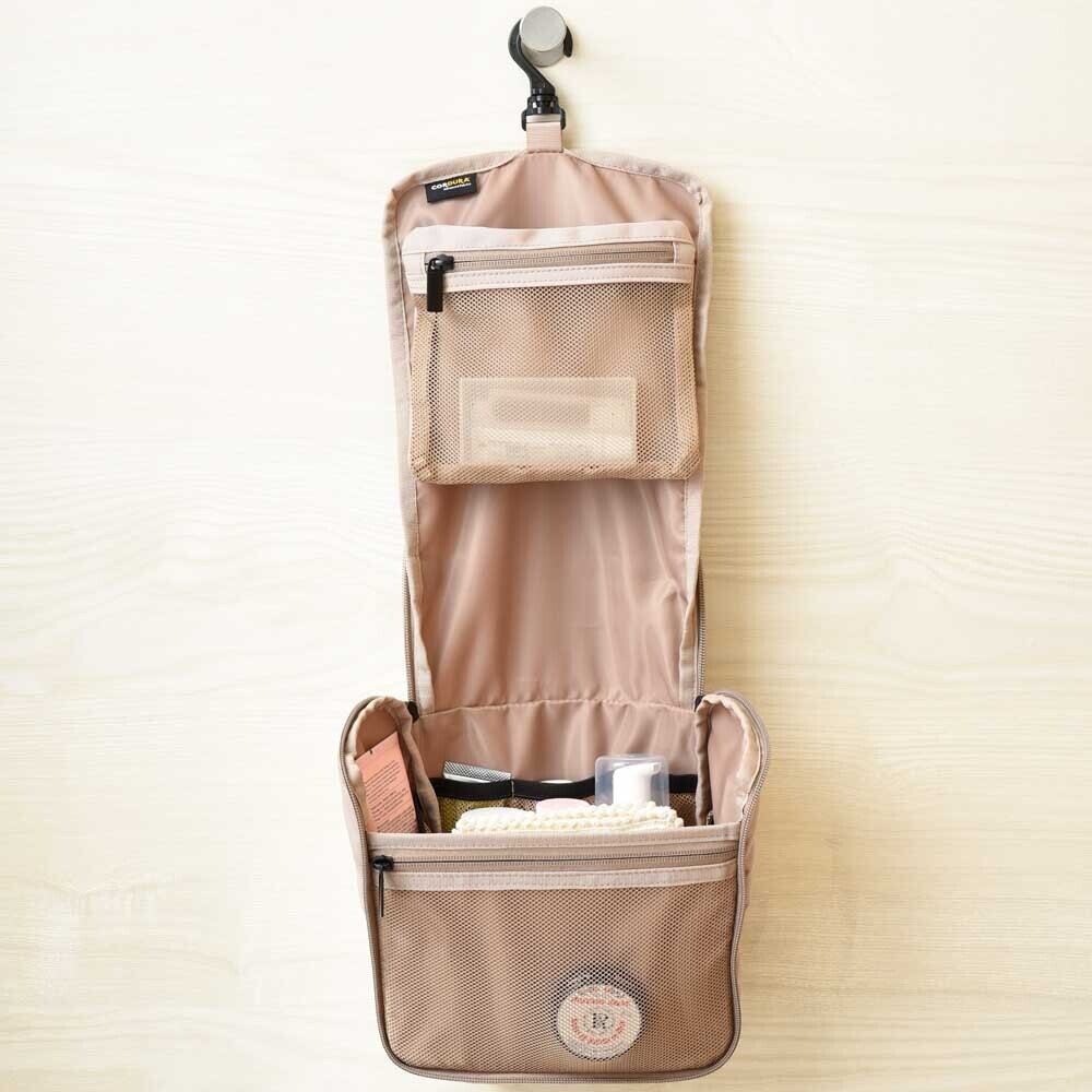 内側にはトラベルサイズのアメニティやブラシなど細かいものも仕分けして収納できるメッシュポケット付き。
